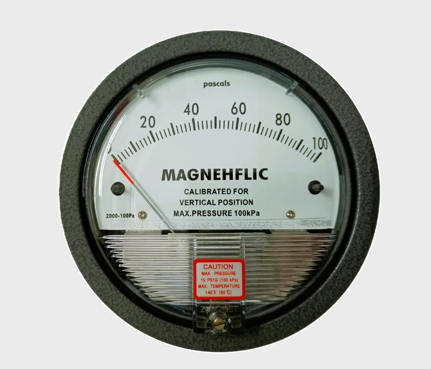 El sistema interno utiliza cápsula o diafragma de precisión para detectar mínimas variaciones de presión, entregando una lectura analógica exacta en una escala amplia y de alta resolución. Su calibración para posición vertical asegura estabilidad y linealidad en las mediciones.