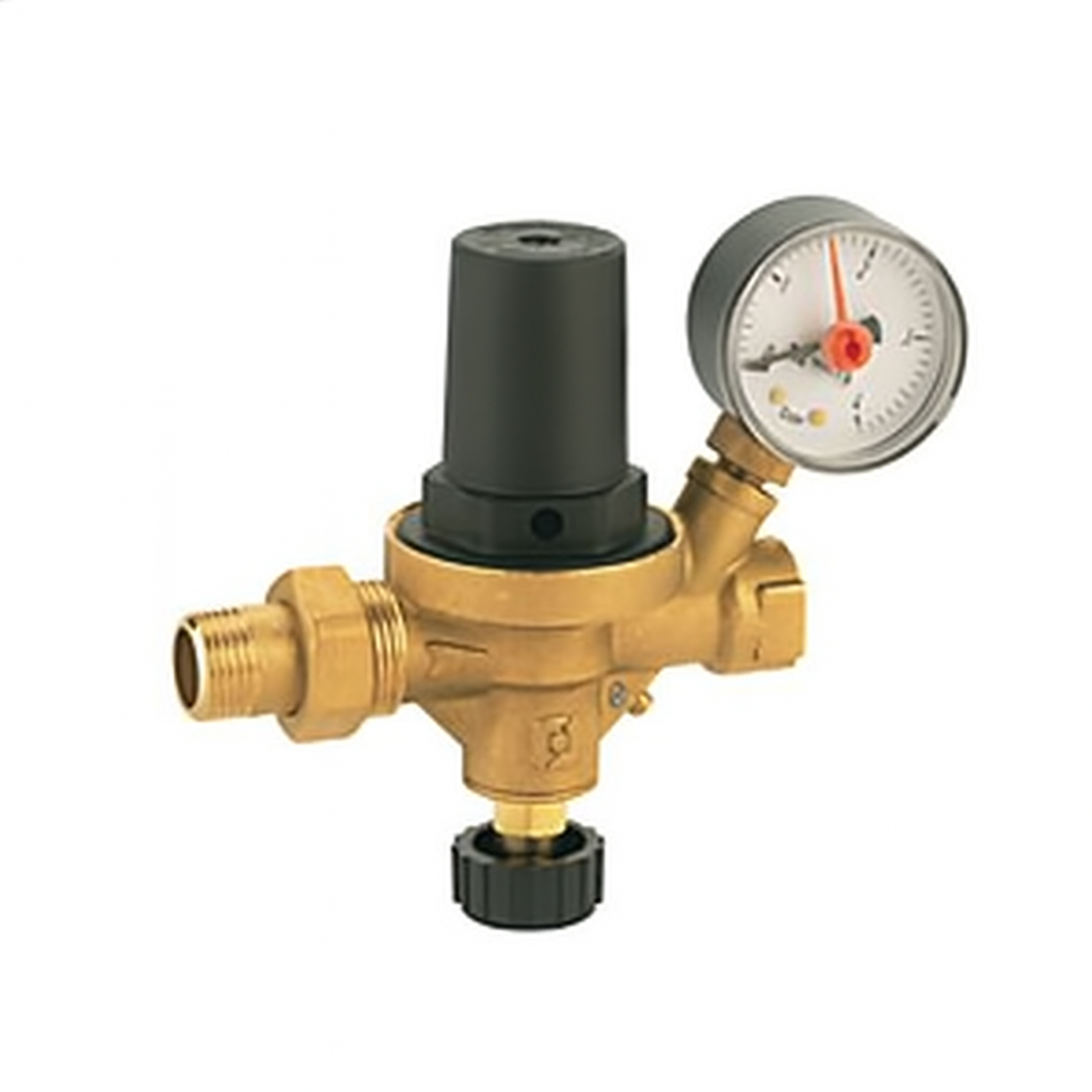 Alimentador automático para instalaciones a circuito cerrado. Cuerpo de bronce y casquete de resina contra golpes. Aparato compuesto de reductor de presión con estabilizador, válvula de retención, válvula de cierre de tornillo, filtro de acero inoxidable, tornillo para controlar la válvula de retención y manómetro. Retención y manómetro de 0 a 4 bar.